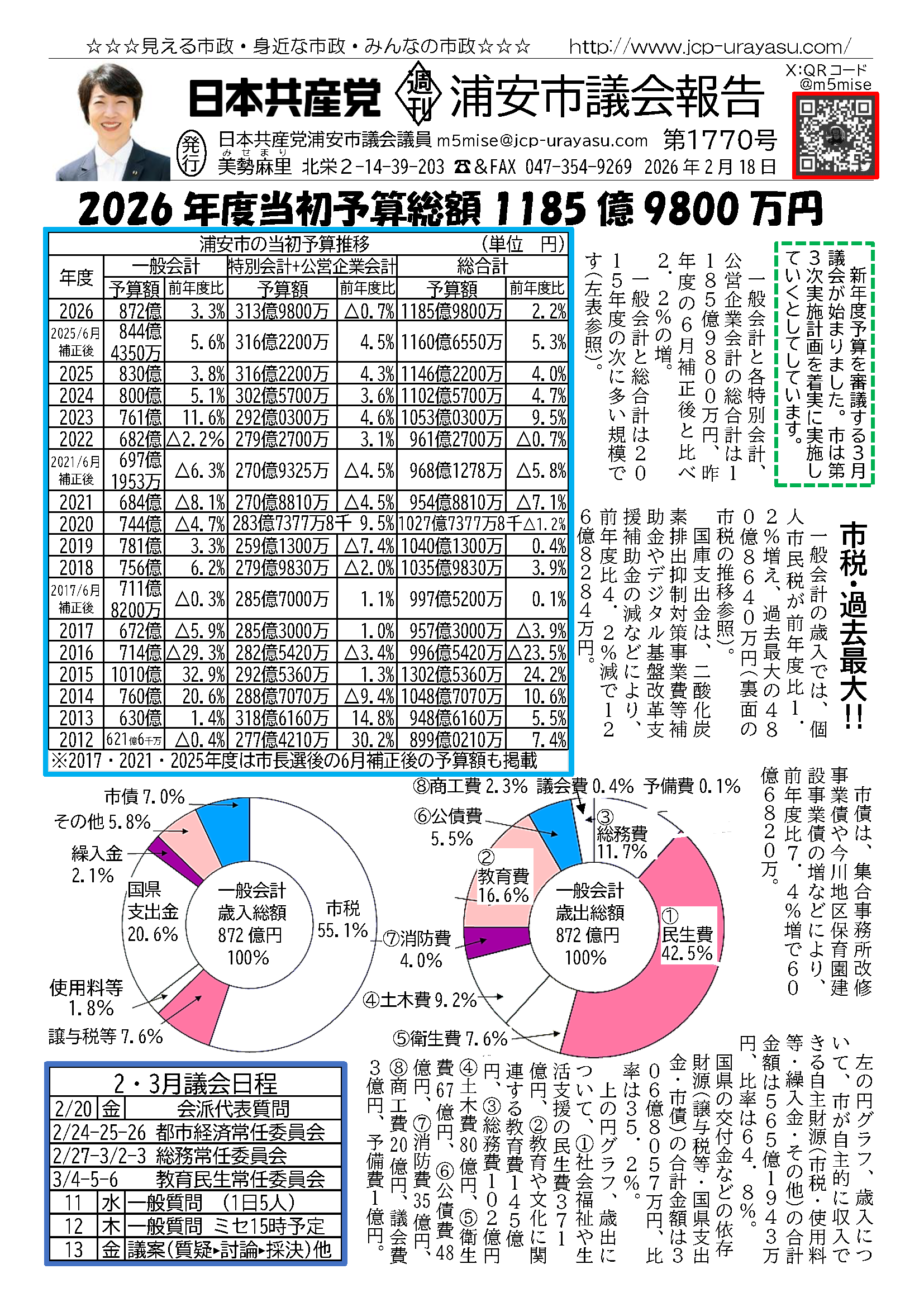 ☛連絡先:日本共産党浦安市議会議員 みせ麻里