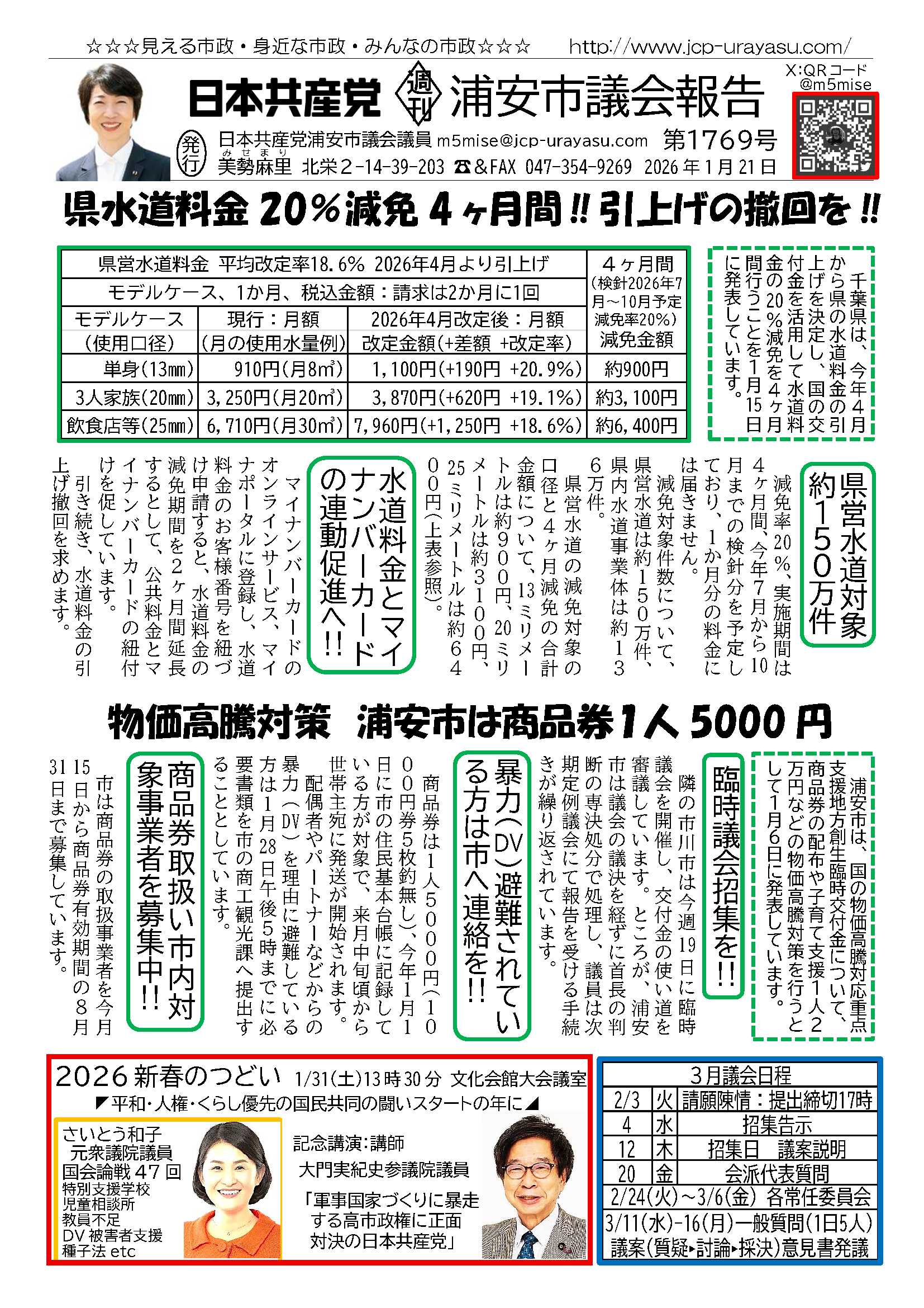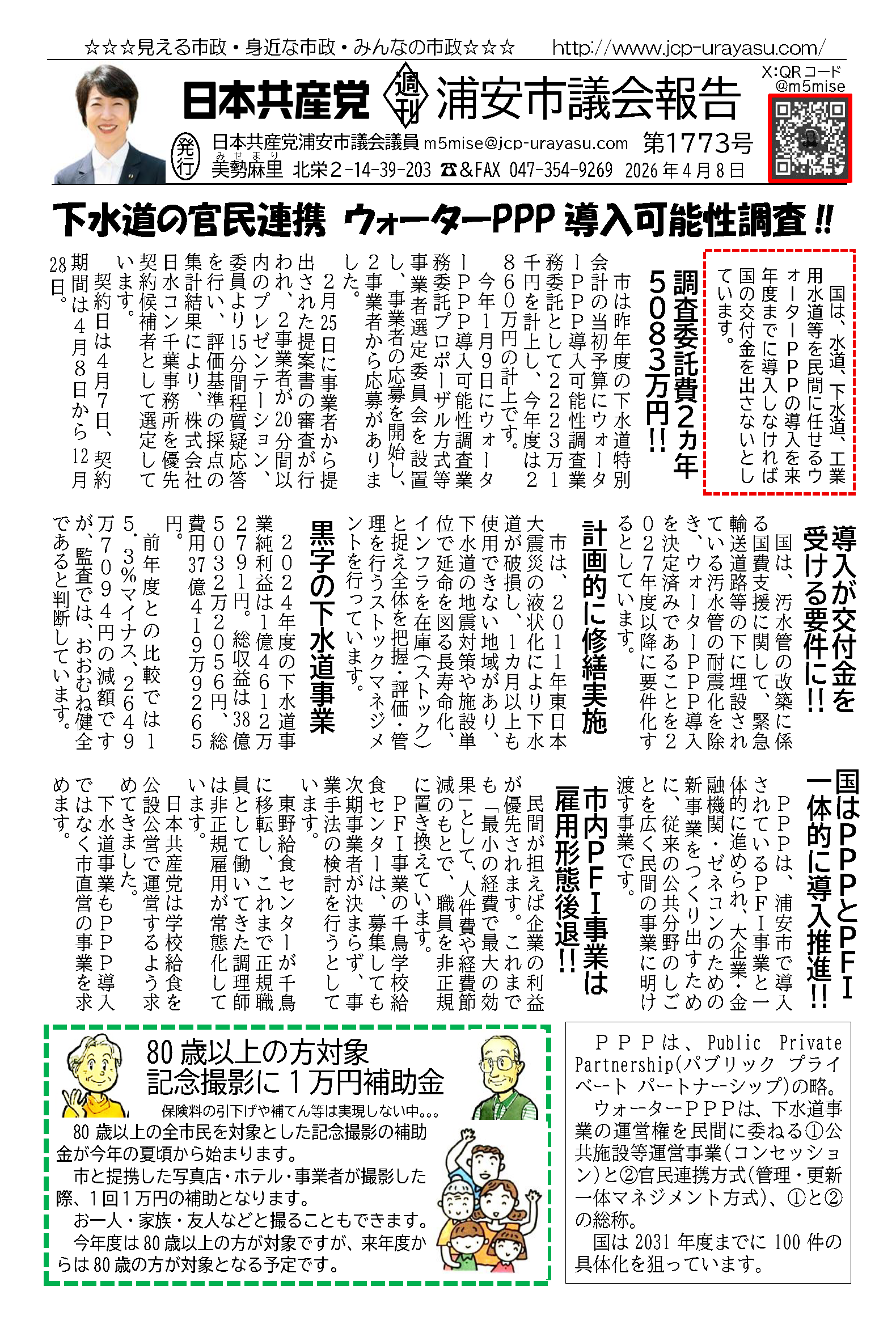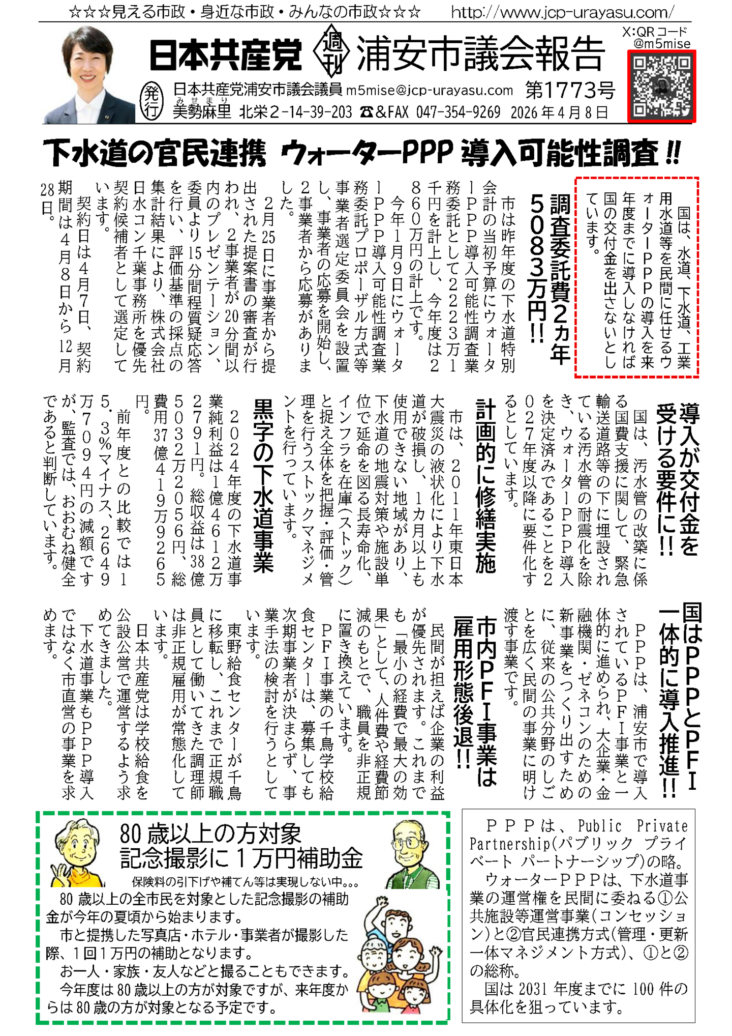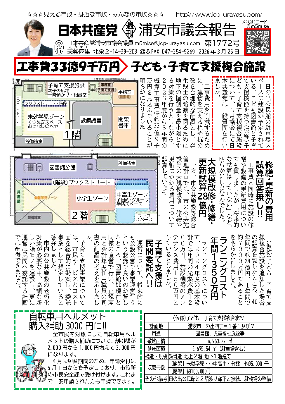 ☛連絡先:日本共産党浦安市議会議員 みせ麻里
